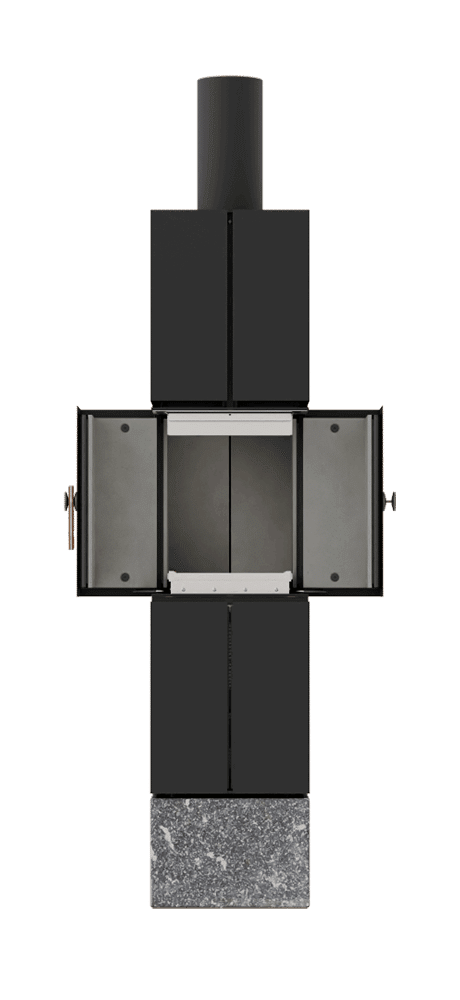 Door je BBQ-elementen eenvoudig op te bergen in de daarvoor bestemde opbergvakken, verandert de BBQfire moeiteloos in een open haard. In de haardopening is een haardscherm geplaatst, dat de omgeving beschermt. De kenmerkende deuren omsluiten het vuur en de betonnen keramische bekleding straalt warmte naar je toe. Een handige asbak met luchtstroomregeling maakt schoonmaken een fluitje van een cent.