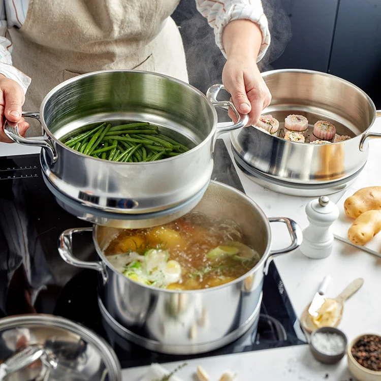 Met de Atlantis 7 pannenset ben je verzekerd van maximale prestaties op alle kookplaten, inclusief inductie en in de oven. Op inductie profiteer je van de TriplInduc technologie, waarmee je tot 30% sneller en efficiënter kookt en nog meer controle hebt over de temperatuur. De goed sluitende deksels helpen warmte en vitamines te behouden, terwijl de schenkranden ervoor zorgen dat je sauzen en vloeistoffen zonder morsen kunt uitschenken. Of je nu aardappelen, pasta of groenten bereidt, deze pannen bieden je elke keer weer professionele resultaten.