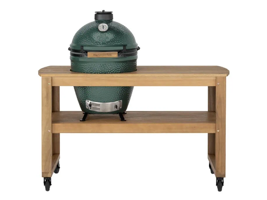 Deze handgemaakte massief houten met de Big Green Egg tafel is gemaakt van eucalyptus hardhout en biedt een betrouwbare basis voor je EGG, inclusief werk- en opbergruimte. Het verplaatsen van je kookeiland is geen probleem.