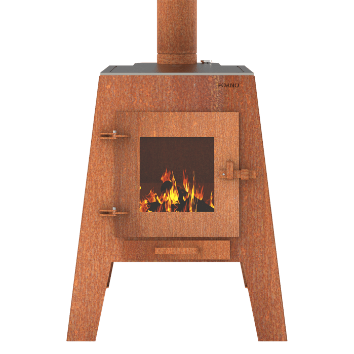 De Forno kan door zijn cortenstaal kan hij het hele jaar buiten blijven staan.