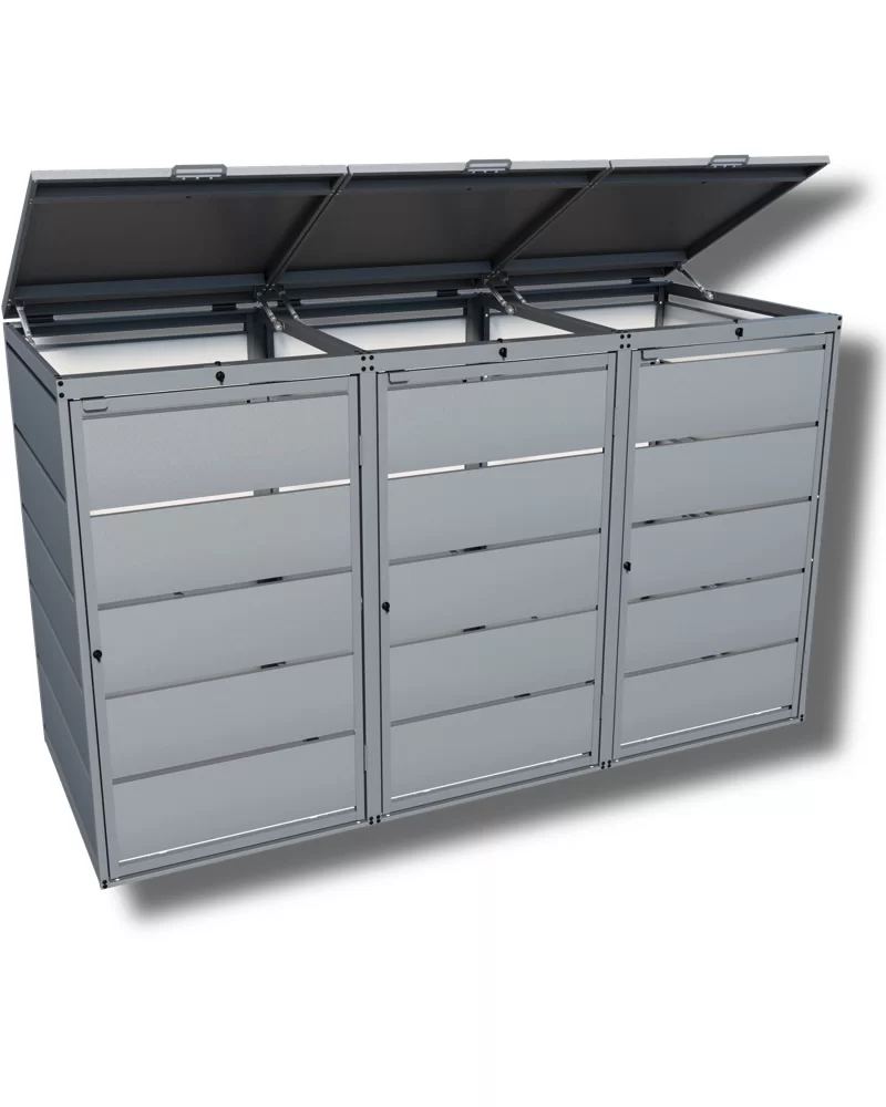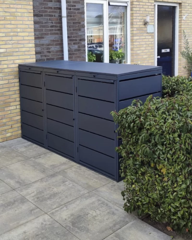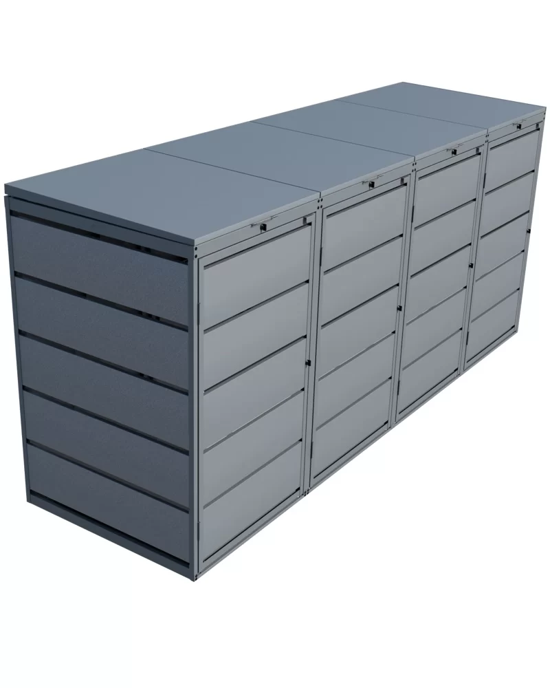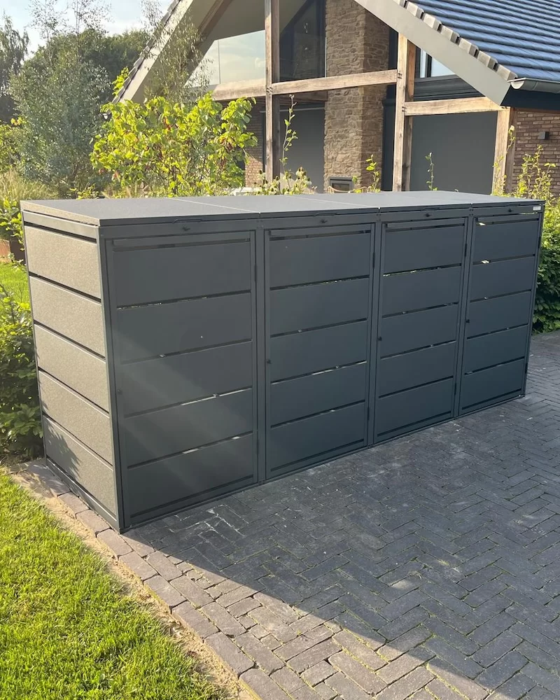 De Kuba Store is een stoere praktische ombouw. Een populaire ombouw om vier afvalcontainers te verstoppen. De ombouw heeft twee gasveren per deksel en is gemaakt van verzinkt staal dat is gepoedercoat in RAL 9007 GrijsAluminium.