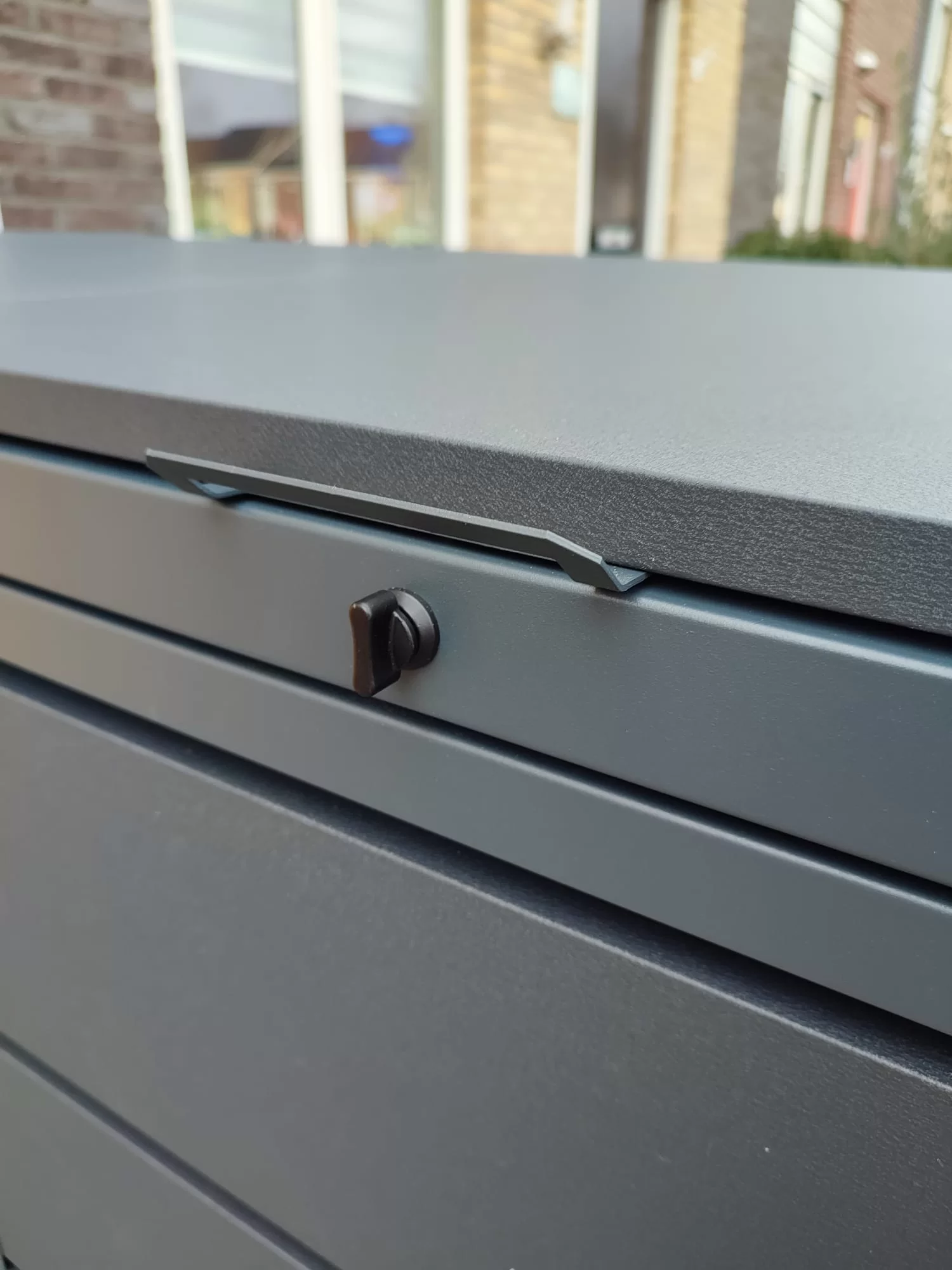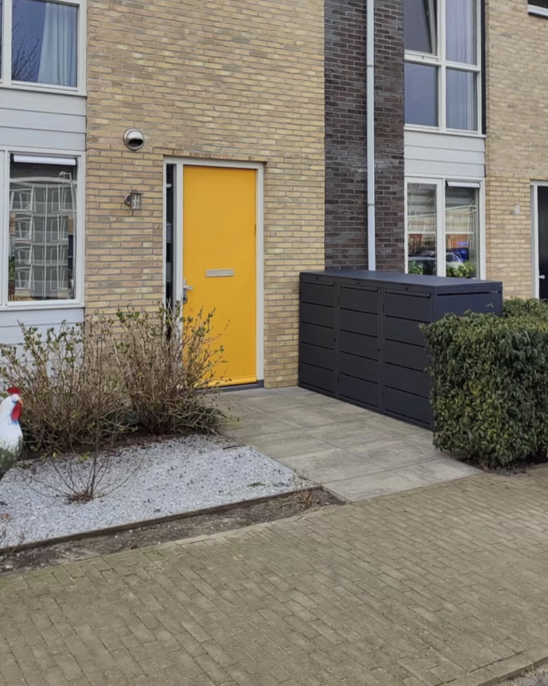 Zowel de deuren als de deksels zijn te sluiten (bij harde wind) met een zwarte draaiknop