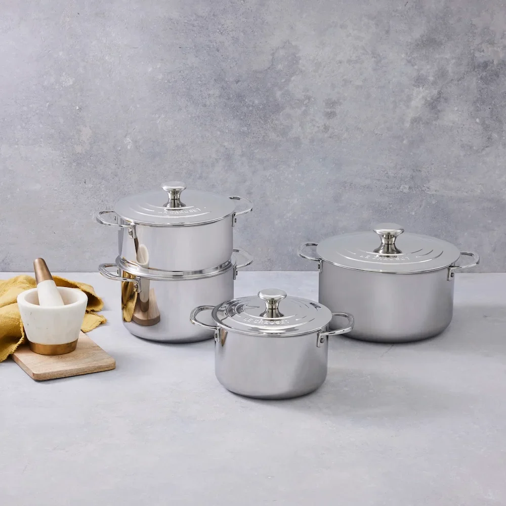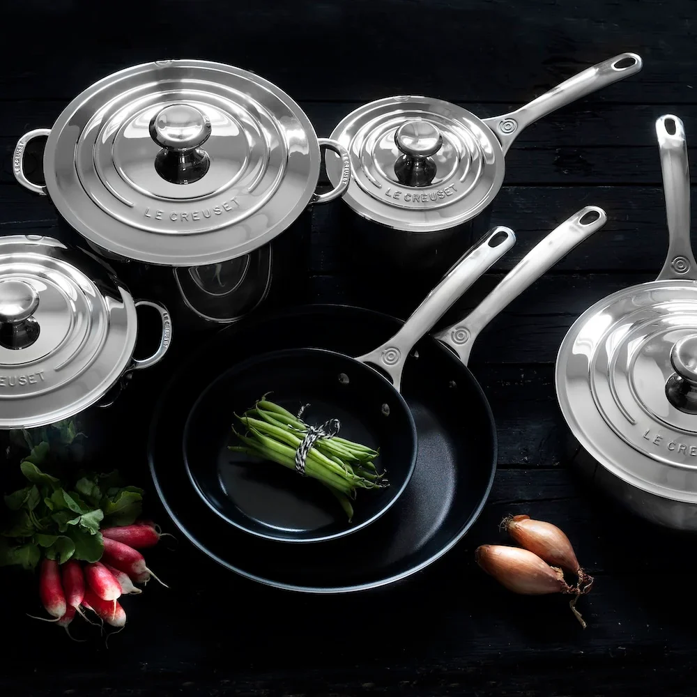 Met zijn elegante vormgeving past de Le Creuset Signature RVS Pannenset in elke keukenstijl, van modern tot klassiek. Deze set combineert functionaliteit met esthetiek, waardoor koken een plezier wordt. Of je nu een eenvoudige maaltijd bereidt of een uitgebreid diner kookt, deze pannenset biedt de kwaliteit en stijl die je verwacht van Le Creuset.