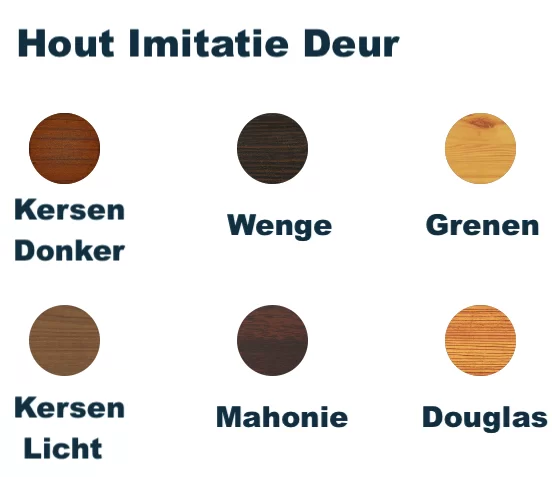 Voor de deur kunt u bovenstaande poedercoating kleur kiezen of de onderstaande Hout Imitatie kleur.